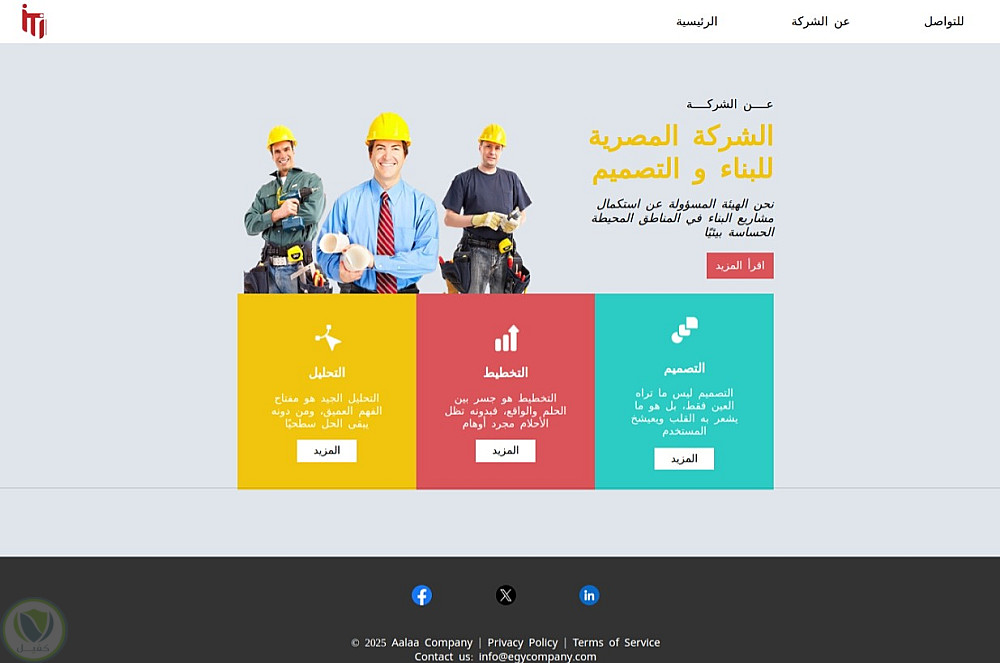 قمت بتصميم وبرمجة صفحة هبوط (Landing Page) كاملة لشركة بناء وتصميم باستخدام HTML5 وCSS3 وJavaScript.