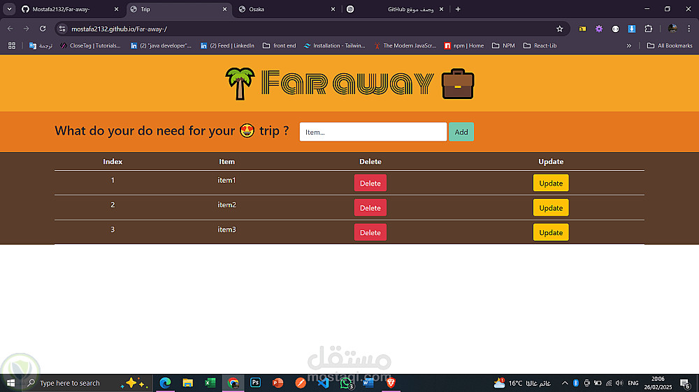 متحمس جدًا لمشاركة مشروعي الجديد Far-away-، وهو موقع ويب تم تطويره باستخدام HTML, CSS، و JavaScript، حيث يركز على تقديم تجربة مستخدم سلسة وتفاعلية.