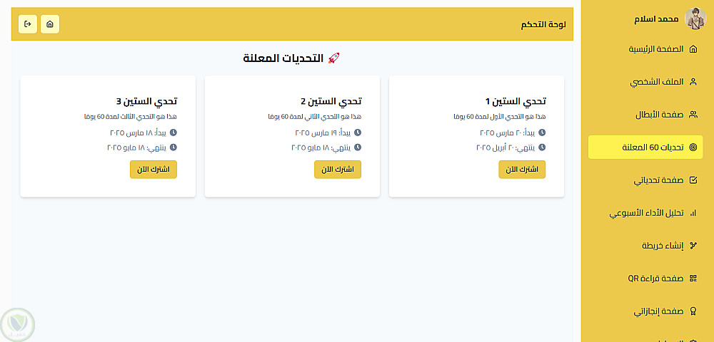 تطبيق تحدي 60 - تطبيق تفاعلي يهدف إلى تحفيز الشباب على تحسين أنفسهم من خلال تحديات مدتها 60 يومًا