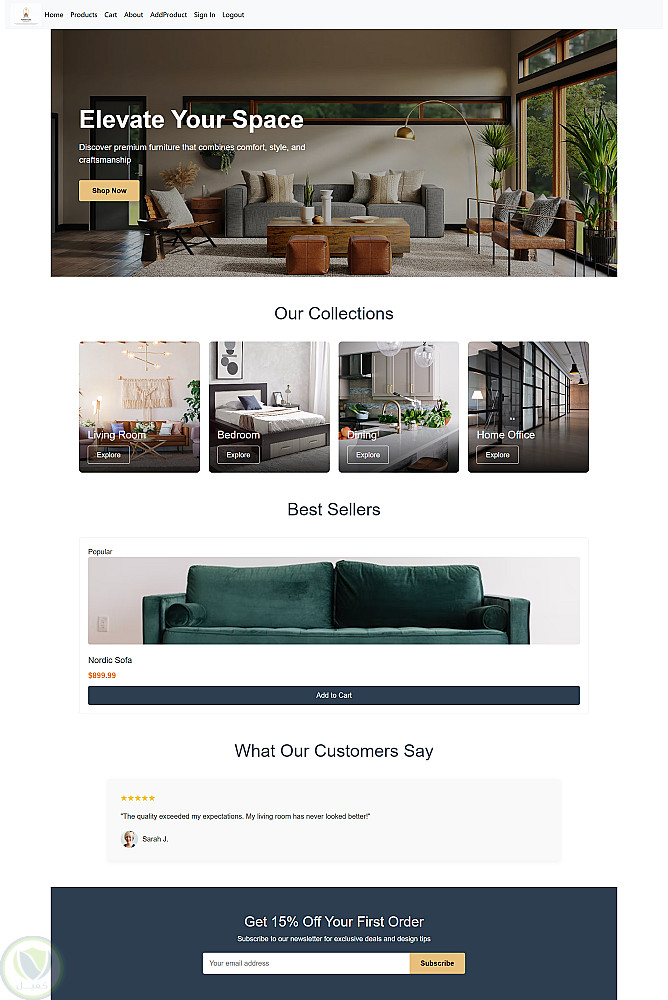 تم تطوير هذا التطبيق باستخدام Angular 17 و CSS لعرض جميع أنواع الأثاث الحديث بشكل منظم حسب الأقسام (Categories).