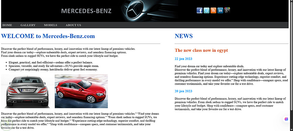 واجهة موقع ويب متخصص للسيارات