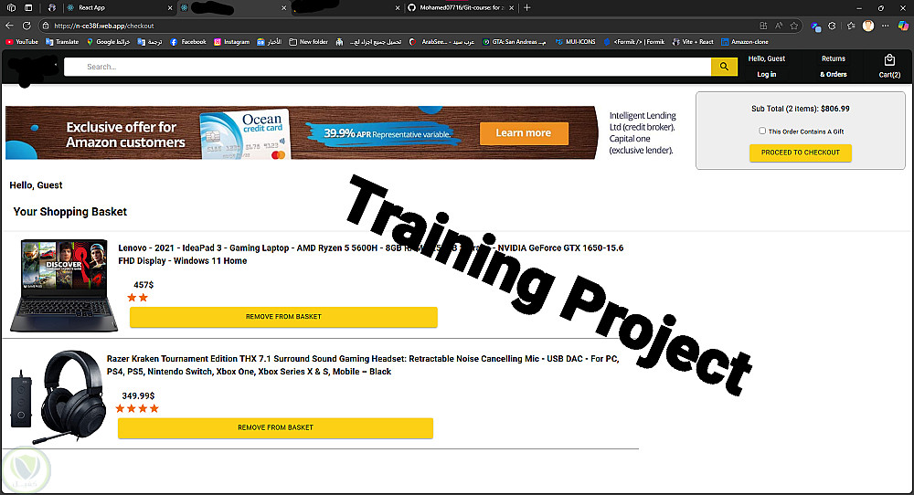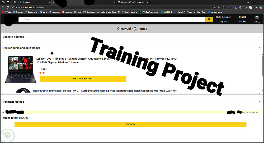 تطبيق شبيه ب امازون باستخدام ريأكت ، كونتكست ، ماتريال يو اي ، بوابه دفع استرايب