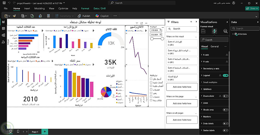 لوحة تحكم تحليلية لمشاتل صنعاء – Power BI