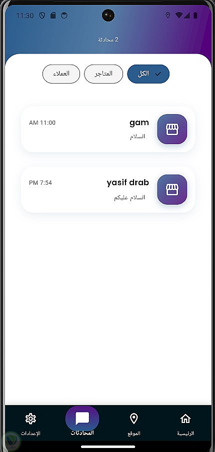يُظهر التطبيق مواقع المتاجر باستخدام Google Maps، ويحتوي على نظام مراسلة فوري عبر Firebase، مع واجهة مستخدم سلسة وعصرية مبنية بأسلوب MVVM لتنظيم الكود واحترافية التطوير.