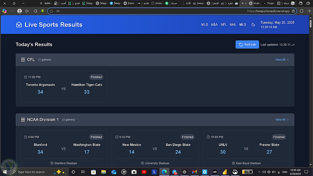 Live Sports Results – موقع نتائج رياضية مباشرة