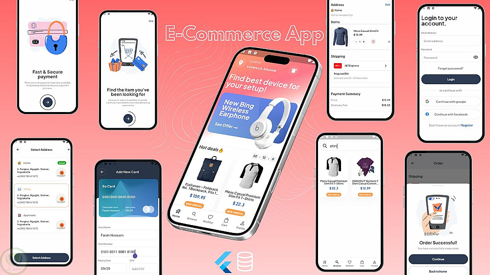 تطبيق التسوق الإلكتروني (E-Commerce App) هو تطبيق متكامل صمّمته لتقديم تجربة تسوّق سهلة وسريعة للمستخدمين، حيث يتيح لهم تصفح المنتجات حسب الأقسام، والبحث والتصفية بحسب النوع أو السعر أو العلامة التجارية، مع إمكانية عرض تفاصيل كل منتج بشكل واضح يشمل الصور والسعر والوصف. يتميّز التطبيق بواجهة استخدام بسيطة ومتجاوبة تعمل على جميع الأجهزة، ويدعم تسجيل الدخول للمستخدمين، بالإضافة إلى سلة مشتريات قابلة للتعديل، وإشعارات بالعروض والخصومات.