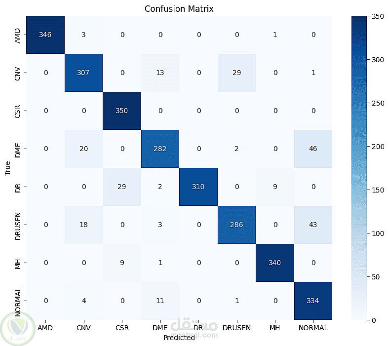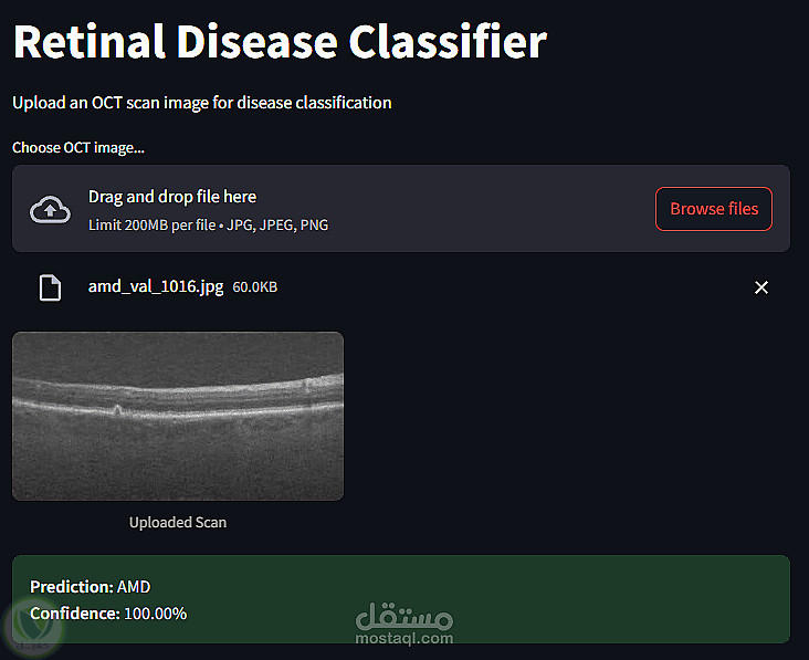 وصف المشروع: تم تطوير نموذج (CNN) باستخدام مكتبات TensorFlow وKeras لتصنيف أمراض الشبكية بناءً على صور التصوير البصري المقطعي (OCT). يركز النموذج على تمييز 8 حالات مرضية تشمل أمراضًا مثل التنكس البقعي المرتبط بالعمر (AMD)، الوذمة البقعية السكرية (DME)، وغيرها، إلى جانب الحالات الطبيعية.