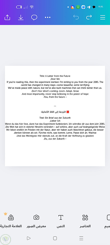 ✅ الترجمة تمت مع الحفاظ على النغمة العاطفية والطابع الخيالي للنص.