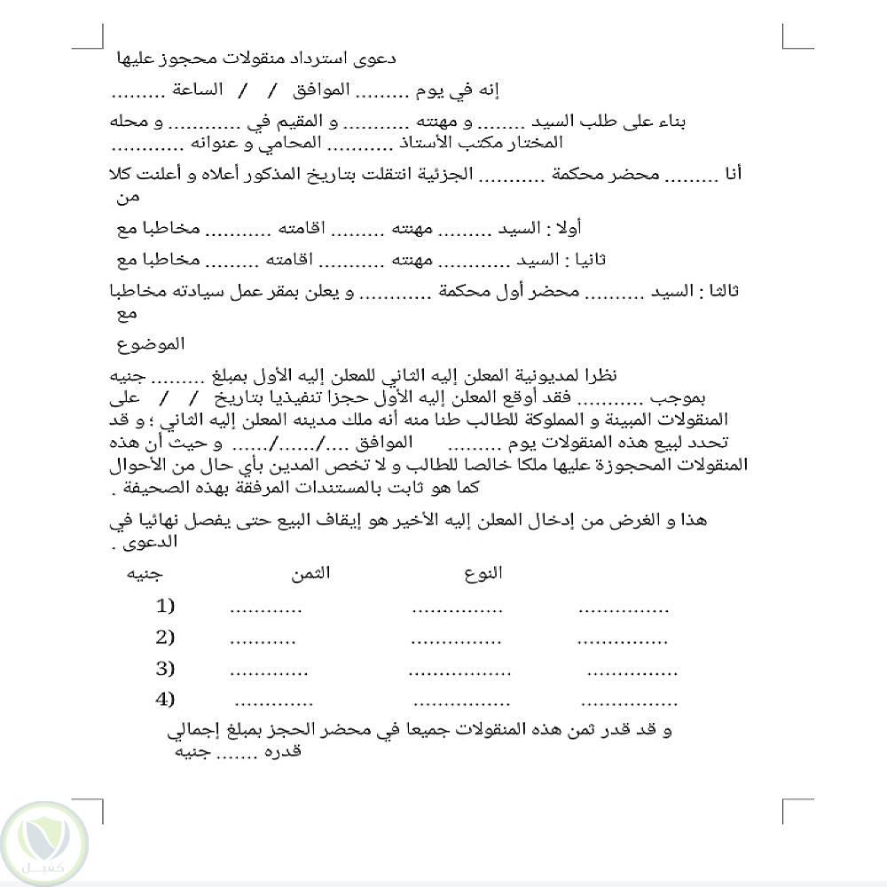 نموذج دعوى استرداد منقولات زوجية وفقا لقوانين الأحوال الشخصية