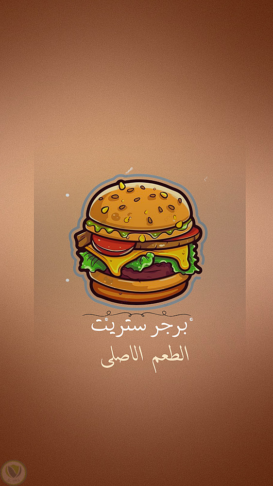 تصميم شعار احترافي لمطعم برجر باسم "برجر ستريت"، تم تنفيذ العمل باستخدام أدوات التصميم الرقمية على Canva.