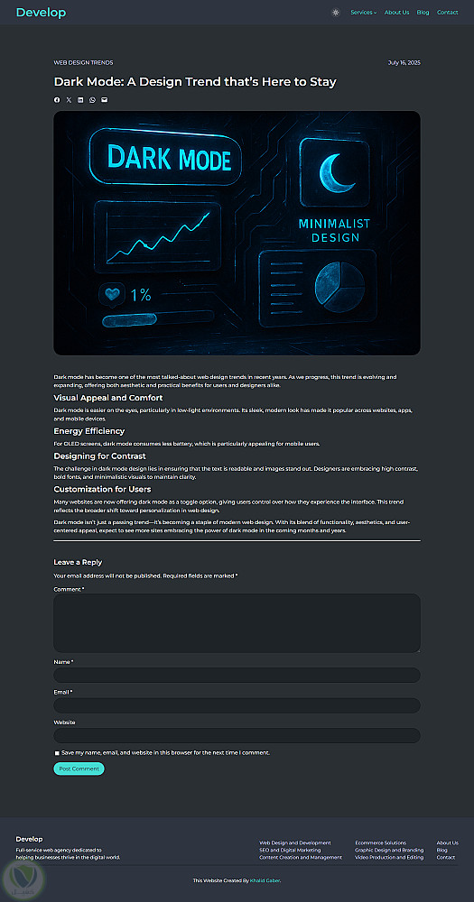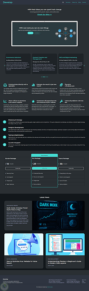 هذا موقع ويب متجاوب بالكامل لشركة تطوير مواقع ويب، يحتوي على صفحة هبوط ومدونة، مُصمم باستخدام ووردبريس مع محرر ووردبريس غوتنبرغ الجديد (Gutenberg) والحديث (Block Editor and Site Editor)، والذي يتميز بخفة وزنه وسرعته في إنشاء تصميم عصري وقابل للتخصيص دون الاعتماد على قوالب جاهزة.