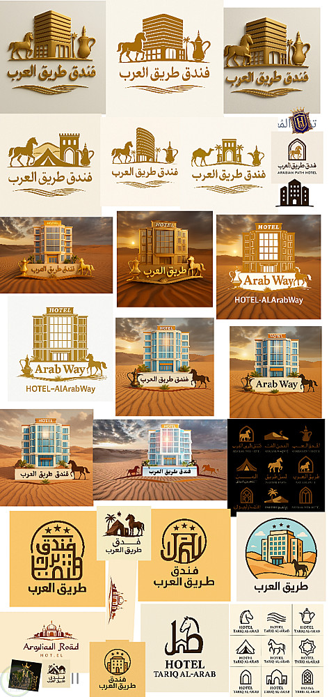يسعدني أن أقدم لكم عملي الاحترافي الذي يجمع بين الأصالة العربية والحداثة في تصميم شعار فندق "طريق العرب".