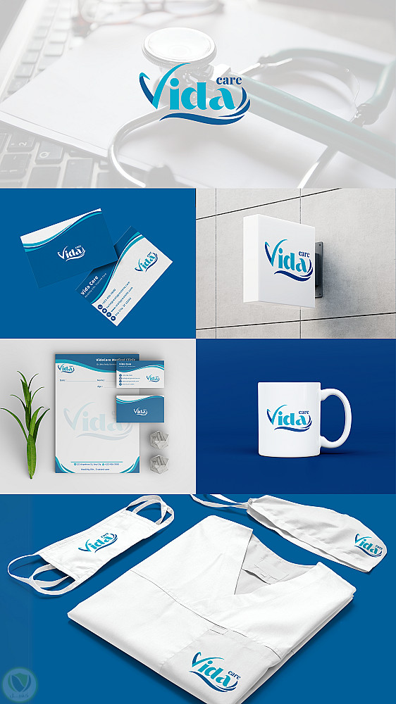 نُقدّم لكم نموذجًا احترافيًا لتصميم هوية بصرية متكاملة لعيادة Vida Care الطبية، يعكس الثقة، والرعاية، والنقاء من خلال استخدام ألوان هادئة وتصميم أنيق يجسّد رسالة العناية الصحية المتكاملة.