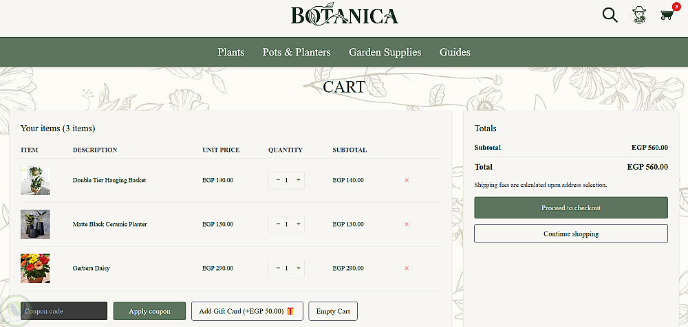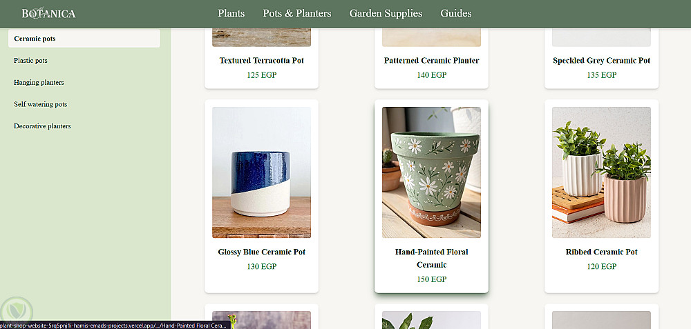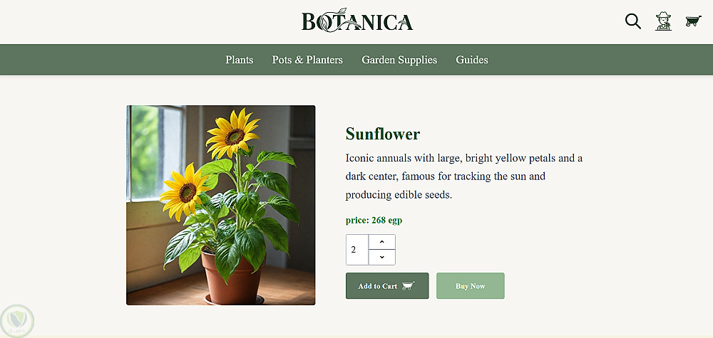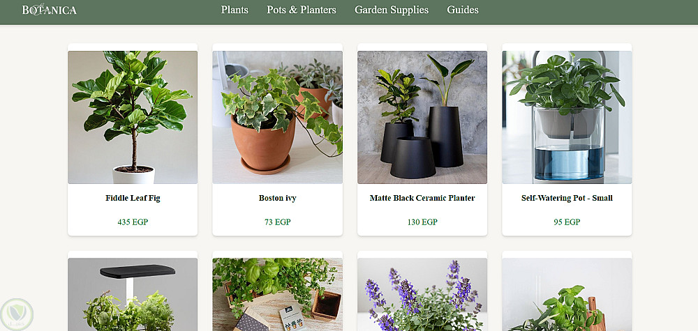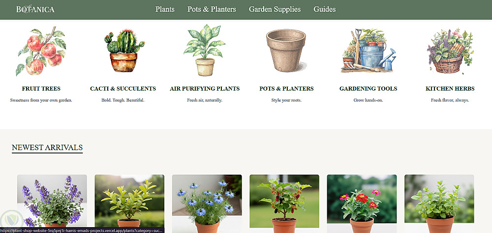 متجر إلكتروني للنباتات (Plant Shop) باستخدام React.js و Tailwind CSS، يضم عرض للمنتجات مع تفاصيلها وسلة تسوق وتجربة مستخدم سلسة بتصميم حديث ومتجاوب.