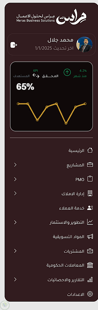 - قائمة جانبية (Sidebar) منظمة: توفر قائمة تنقل هرمية في الصفحة الرئيسية لسهولة الوصول إلى أقسام العقارات المختلفة.