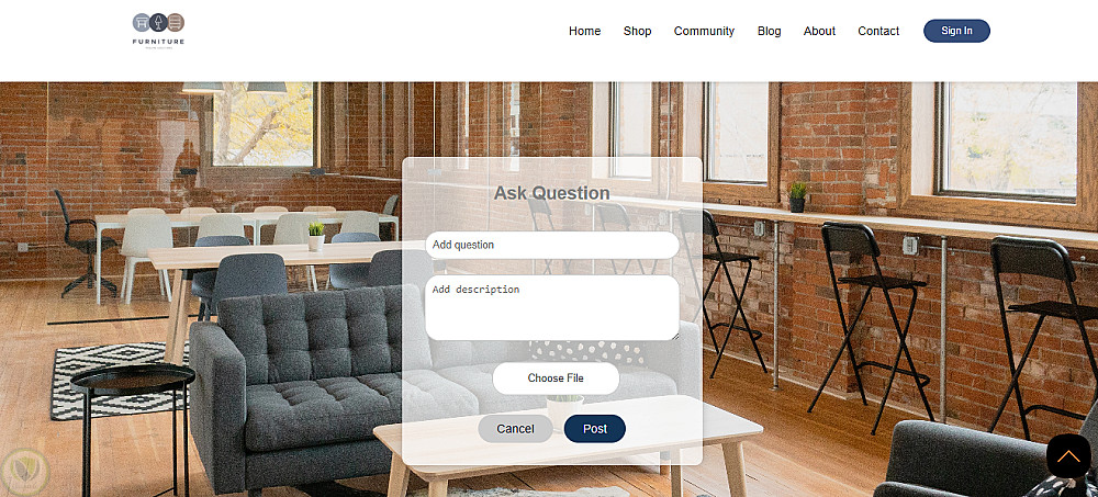 موقع إلكتروني عصري لعرض منتجات الأثاث مع قسم مدونة (Blogs) تفاعلي يتيح للمستخدمين إضافة منشوراتهم وعرضها مباشرة في نفس اللحظة باستخدام تقنيات JavaScript، مما يخلق تجربة سلسة وديناميكية.