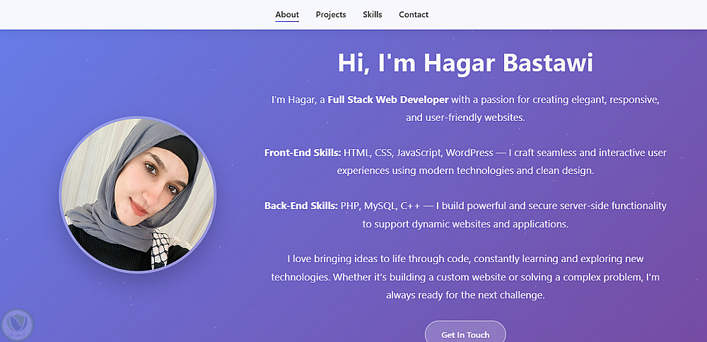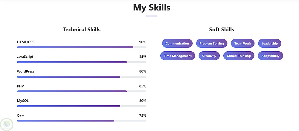 كما يحتوي الموقع على قسم مخصص لعرض مهاراتي التقنية بشكل واضح