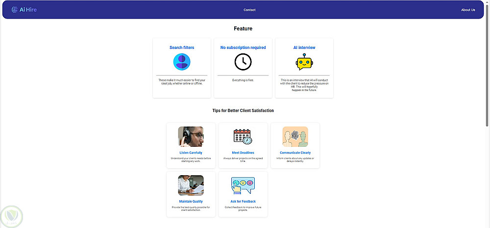 3-AI interview هو عبارة عن انتر فيو الai هيعمله مع العميل عشان يقلل الضغط علي الhr وده انشاء الله مستقبلا