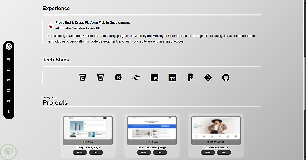 البورتفوليو متجاوب بالكامل مع جميع الأجهزة (موبايل – تابلت – لابتوب)، ويعرض: