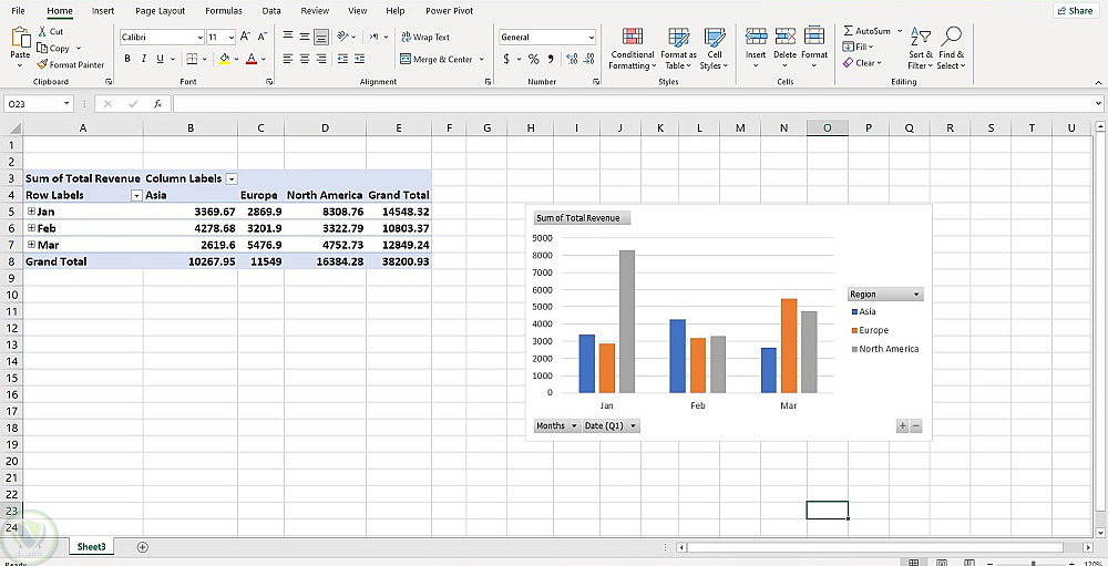 قمت بعمل تحليل للمبيعات عبر مناطق مختلفة خلال الربع الأول من السنة: