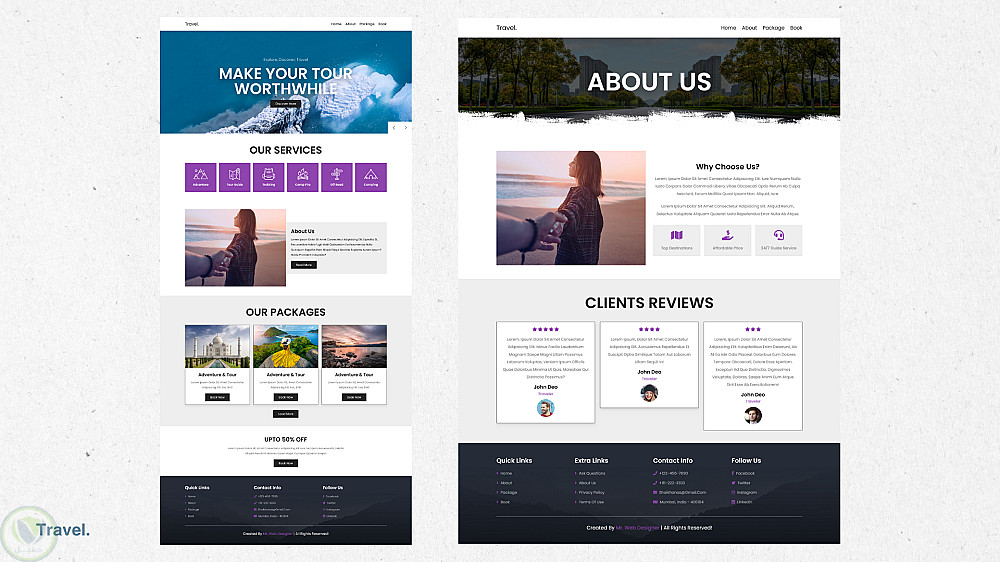 موقع إلكتروني متكامل خاص بشركة سياحة وسفر، يتميز بتصميم جذاب وتطوير احترافي باستخدام أحدث تقنيات الويب.