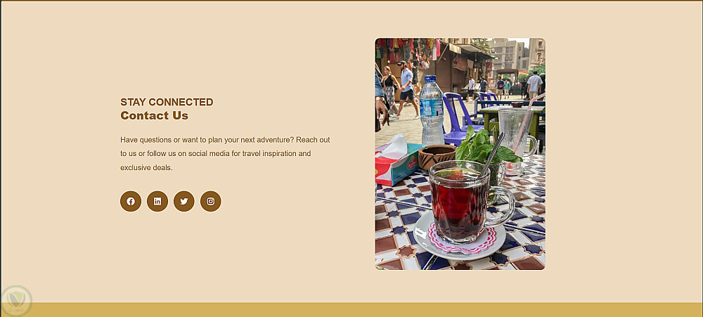 صفحة تعريفية (Landing Page) لشركة سياحة وسفر، مصممة باستخدام HTML / CSS / JavaScript بتصميم متجاوب (Responsive) يعمل على جميع الأجهزة.