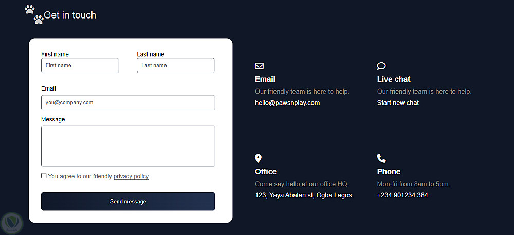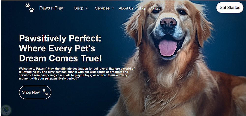 موقع الحيوانات الأليفة ويحتوي أيضًا على متجر للأطعمة والعناية بالحيوانات الأليفة.