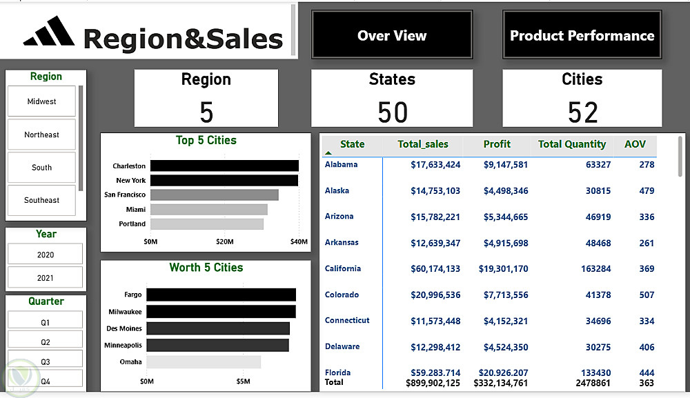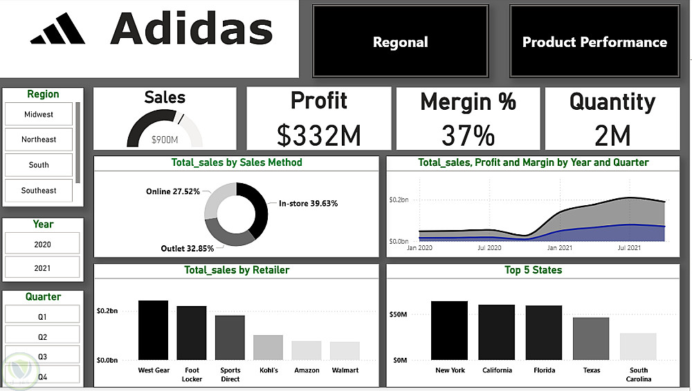 نفذت مشروع تحليل مبيعات Adidas في الولايات المتحدة باستخدام Power BI.