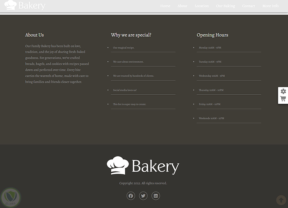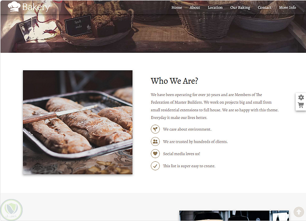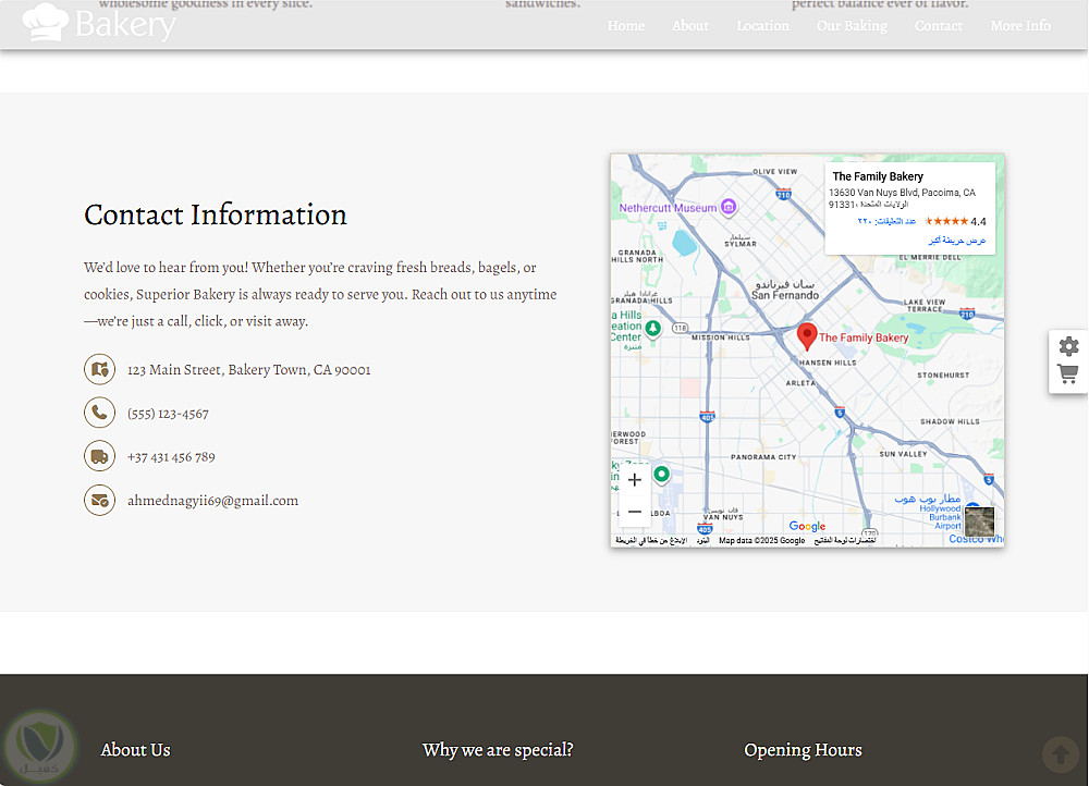 الموقع صُمم ليكون جذاب، عصري، وسهل الاستخدام مع واجهة تعرض منتجات المخبز بشكل مرتب.