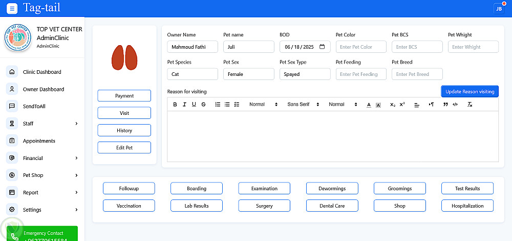 Tag Tail - نظام الإدارة المتكامل للعيادات البيطرية