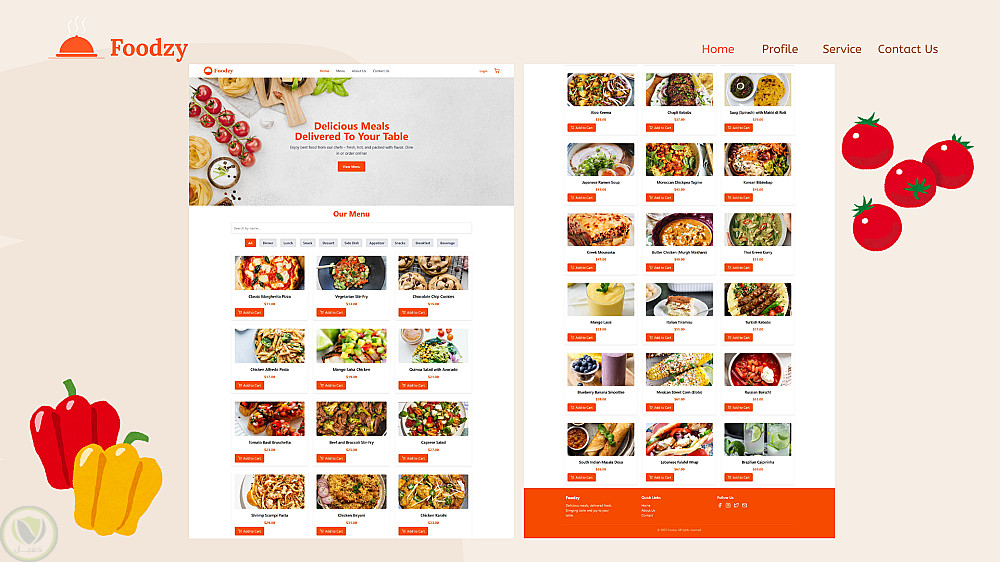 موقع إلكتروني لمطعم حديث، تم تطويره باستخدام مكتبة React.js. يحتوي على واجهة مستخدم جذابة وسهلة الاستخدام، ويضم عدة صفحات رئيسية مثل:
