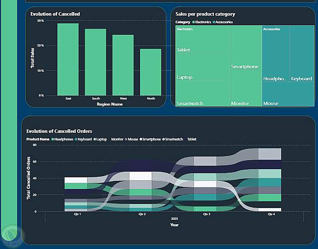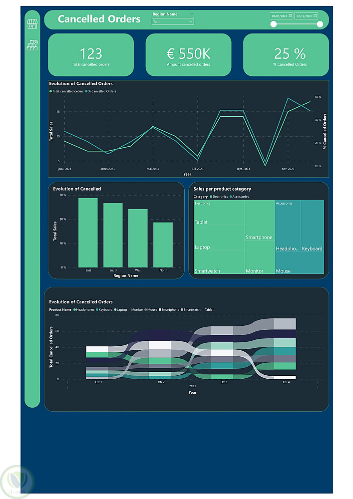 العمل يمثل لوحة معلومات تفاعلية متقدمة تم إنشاؤها باستخدام Power BI لـتتبع وتحليل أداء المبيعات لمتجر خلال فترة زمنية محددة.