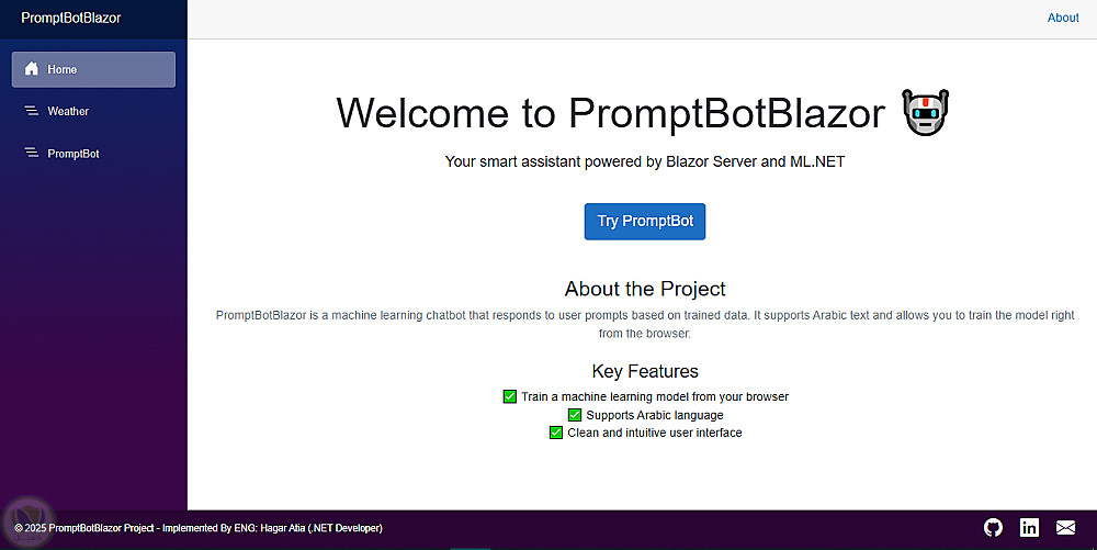 تطبيق ويب يعتمد على Blazor Server وML.NET لتدريب نموذج تعلّم آلي قادر على الاستجابة للنصوص باللغة العربية.