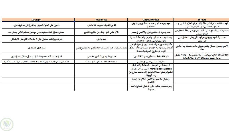 عمل تحليل SWOT لشركة توعية عن مخاطر إدمان الموبايل وإدمان الإباحية