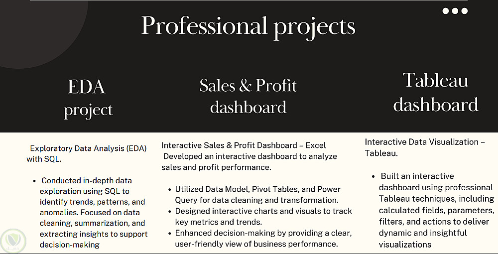 لوحة متابعة المبيعات والأرباح في Excel: صممت لوحة تفاعلية باستخدام PivotTables وPower Query ونماذج البيانات لتتبع مؤشرات الأداء والاتجاهات، مما دعم تحسين القرارات.