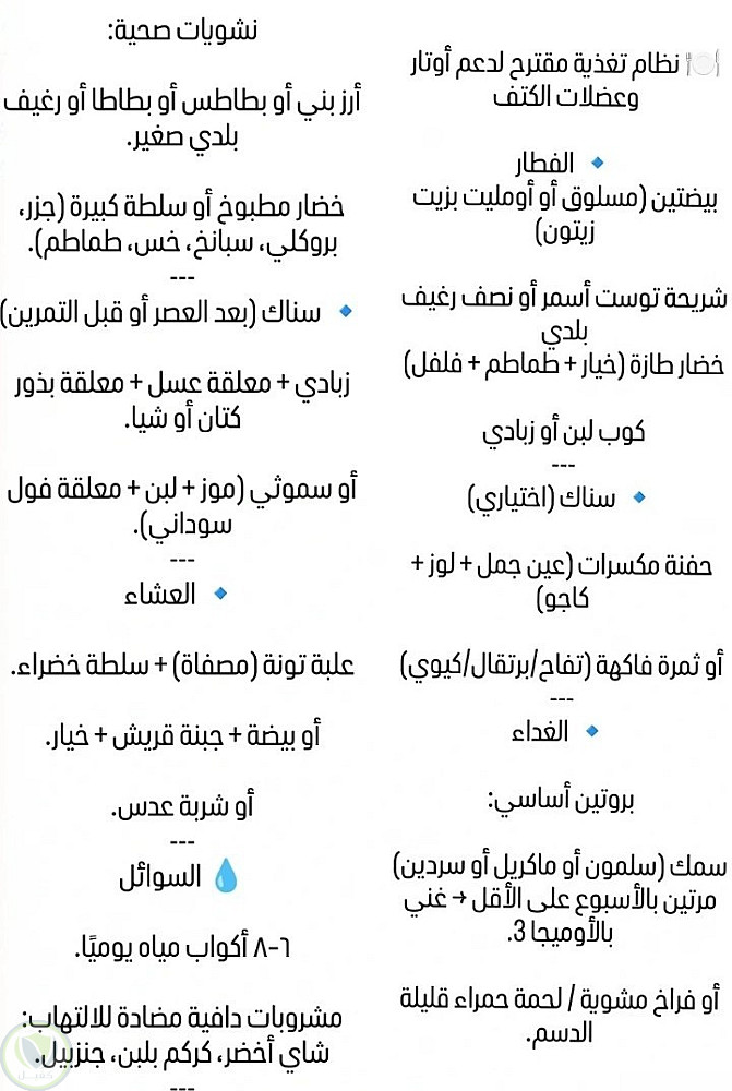 نظام غذائي سليم لدعم وصحه اوتار وعضلات الكتف