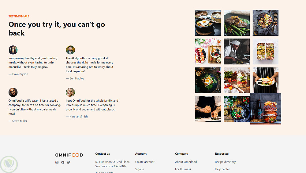 صفحة هبوط احترافية لمطعم OmniFood تم تصميمها بالكامل باستخدام HTML5، CSS3، وBootstrap 5.