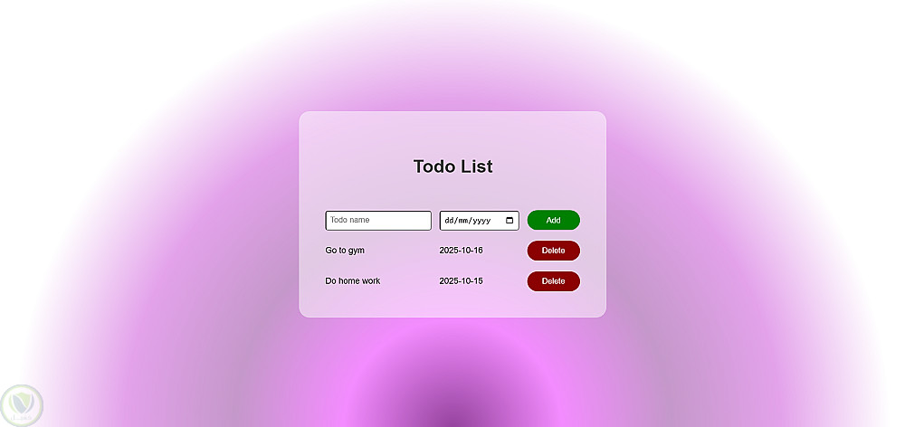 صفحة هبوط لتطبيق قائمة مهام بسيط تم تصميمه باستخدام HTML، CSS، وJavaScript، يتيح للمستخدم إضافة المهام وتحديد التاريخ لإنجازها بسهولة ومرونة.