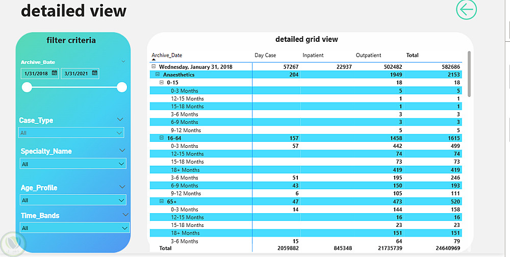 تحليل بيانات لقاعدة بيانات تسمى (healthcare) وعمل لوحة تحكم لإظهار اهم النقاط والارقام الخاصة بقوائم الانتظار بإستخدام برنامج Power BI ولغة DAX