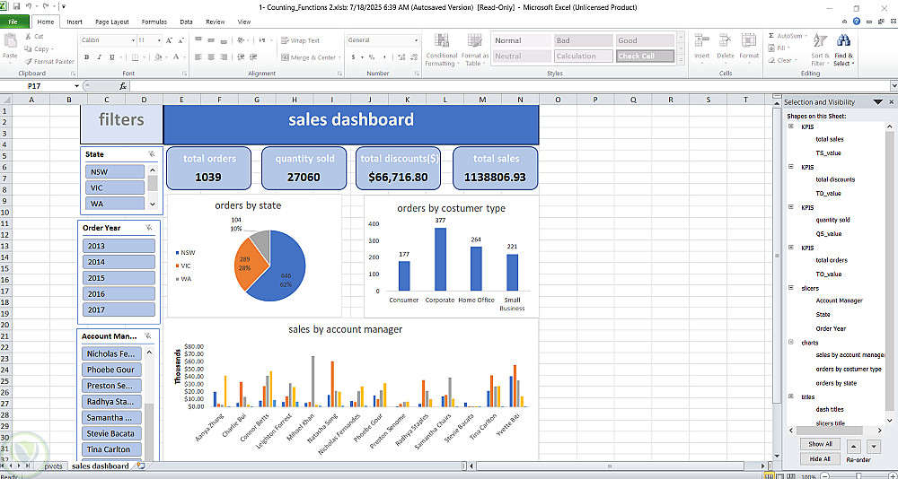 لوحة تحكم للمبيعات بإستخدام Excel