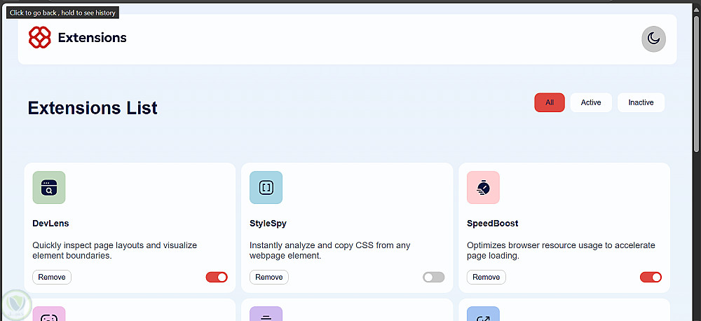 صفحة هبوط ويب متجاوبة بالكامل باستخدام HTML وCSS ورسوم متحركة أساسية بـ JavaScript.واجهة أنيقة لإدارة وتنظيم واستكشاف الإضافات المفضلة لديك في المتصفح.