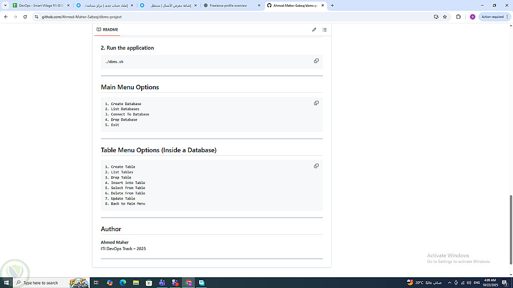 نظام إدارة قواعد بيانات بسيط يعمل عبر سطر الأوامر، مكتوب بالكامل بلغة Bash كجزء من برنامج تدريب DevOps في معهد تكنولوجيا المعلومات (ITI)