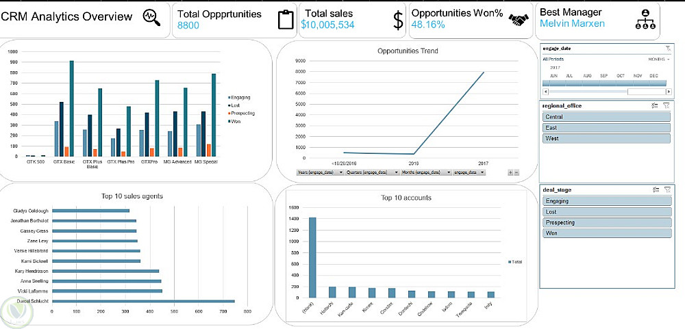 تعرض الداشبورد التفاعلية تحليلًا شاملًا لأداء إدارة علاقات العملاء (CRM)، من خلال تتبّع الفرص البيعية والمبيعات والفرق المسؤولة عنها، بما يساعد المديرين على اتخاذ قرارات مبنية على البيانات.