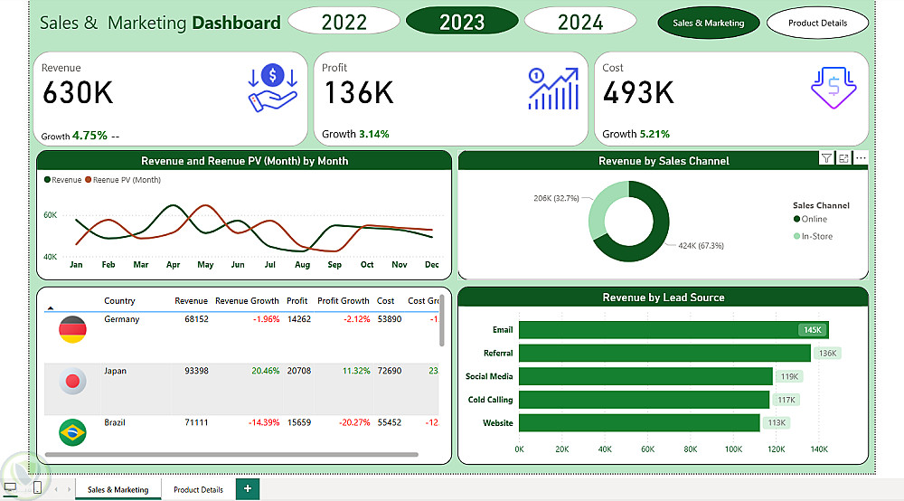 تصميم داشبورد Sales & Marketing باستخدام Power BI