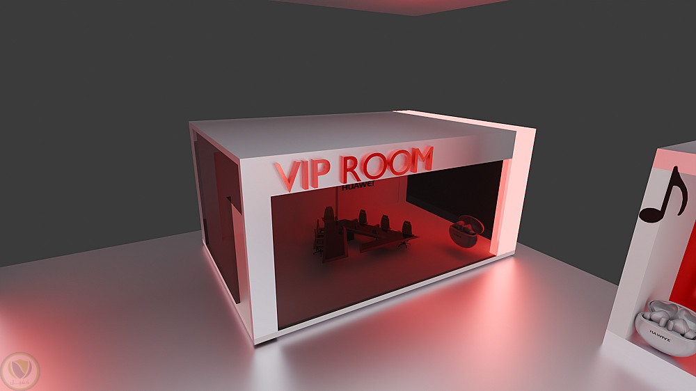 تصميم متكامل لإيفينت خاص بشركة هواوي، يشمل بوث حديث بمساحة 3×3 متر، ميديا وول، فوتوبوث يحمل الهوية البصرية للشركة، غرفة VIP، مكتب استقبال، ولافتات إعلانية كبيرة متوافقة مع هوية هواوي.