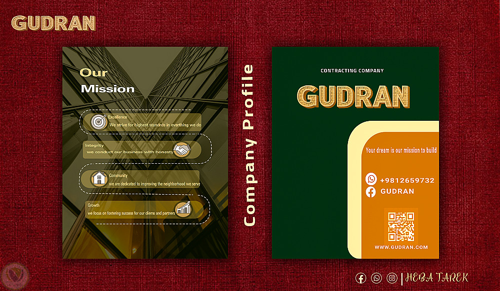 بروفايل كامل لشركة عقارات يتضمن التعريف بالشركة وخدماتها وصور لهداياها الترويجية وبوسترات للسوشيال ميديا وبورشور.