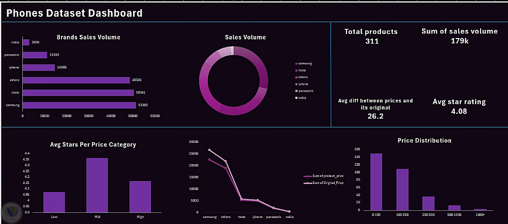 - بدأتُ العمل على ملف غير منظم، يحتوي على بيانات مبيعات الهواتف من عدة علامات تجارية. باستخدام Power Query، قمت بـ: