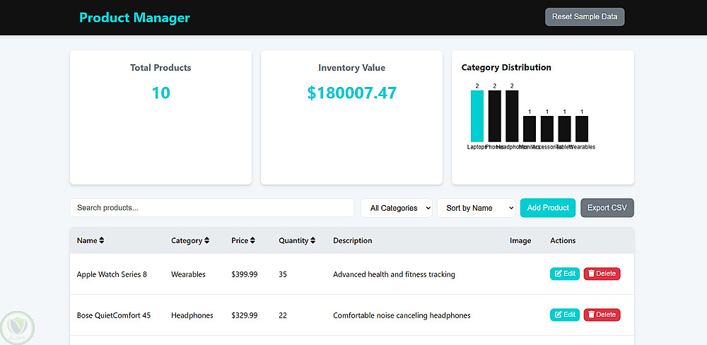 نظام كامل لإدارة المنتجات داخل المخازن، يحتوي على لوحة تحكم لإضافة وتعديل وحذف وعرض المنتجات، مع إحصائيات فورية لحالة المخزون.