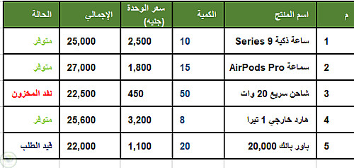 تصميم وتنظيم جدول مخزون ومبيعا...