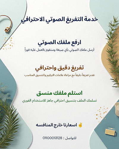 تشمل هذه الخدمة تحويل المحاضرات والاتصالات الهاتفية وفيديوهات اليوتيوب إلى نص بدقة وجودة عالية مع ضمان التدقيق والانتباه للتفاصيل.